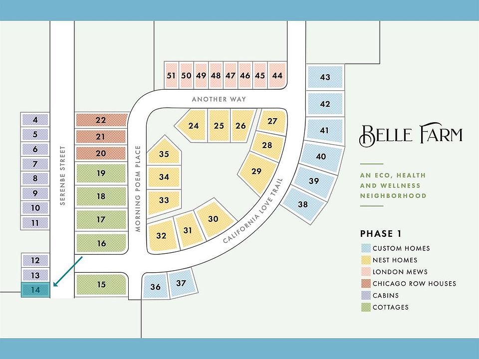 Lot 14 at Belle Farm. Building plan consists of a Cabin Home: 2-3 Beds, 2.5-3.5 Baths, approx. 1,300 - 1,700 SQ FT. Who says you cannot live beautifully in a smaller footprint? These cozy and light-filled standalone homes are a joy and a rarity ? combining high quality, high functionality and attention to design in a small footprint home. The Cabins at Belle Farm serve as a peaceful antidote?an example that less can be more. Inspiring interiors, front porches and secluded side yards allow for both privacy and opportunities to connect. All homes at Belle Farm have solar, geothermal heating and cooling and high performance construction methods to help us tread lighter and stay more resilient.