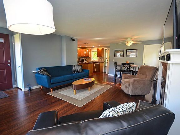 Immaculate 3 bedroom ranch in a fantastic neighborhood with ideal commuter access! This home has so much to offer! From the curb appeal to the detached garage to the flat yard to the enclosed porch with all new sliders! From the moment you walk in, you will know this is the one! The family room captures you with the fireplace and open feel to the dining area. The kitchen is open, bright and updated with stainless appliances, granite counters, new lighting, mosaic backsplash and plenty of cabinet space. The full bathroom has also been updated with new tile, sink and flooring. There are 3 good sized bedrooms that all offer ceiling fans and refinished hardwood floors (through-out). The basement offer endless potential with its partially finished features such as a gas on gas heater, FULL bathroom, laundry and daylight windows. All this plus young updates such as; hot water tank, vinyl siding, vinyl windows and roof!