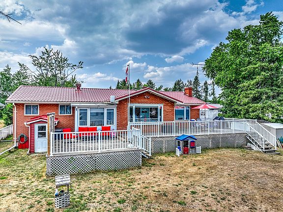If you are looking for a year-round Balsam Lake property with superb swimming waterfront and plenty of capacity for family and guests, this is the place for you! Sited on the calmer west shore of the lake, the half-acre lot features 107 ft of clean, hard-bottom waterfront that is perfect for swimmers of all ages. Both the waterside and roadside lawns are expansive and level, providing ample space for all manner of outdoor activities. The cottage provides 2,850 sq ft of living area across the main floor and finished basement. The main floor is highlighted by open concept living areas, with a walk-out to a large deck that spans the length of the cottage and affords beautiful lake vistas. The kitchen is beautifully designed with plenty of cupboard and counter space, and it opens to the living room as well as having wonderful views out the large windows to the lake. There are three bedrooms on the main floor, including the Primary with a 4 pc ensuite. The basement has a large rec room, bathroom and additional sleeping area. Access to the property is easy via a paved municipally maintained road, and shopping and services in Coboconk are within a 10 minute drive.