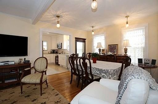 Winning combination of location, price and lovely vintage colonial ! Brand new white kitchen w/ stainless appliances, new full and half bath too! Beautiful hardwood floors enhance the open floor plan throughout the living room/ dining room. Cozy sitting room ( or first floor BR!) with built ins or closet, loaded with terrific windows and natural light! Laundry is on first floor with half bath too! 2- 3 wonderful BRS/ study on second floor with full bath and large closet area! Gorgeous hardwood floors as well! Relax in your lovely backyard or enjoy your rocker on the front porch! Walking distance to town center, shopping, coffee and major routes . Relocating owner has barely unpacked and is sad to be offering her beloved home....are you the lucky new owner of this great property?!? Please, Make a yourself at HOME!!!