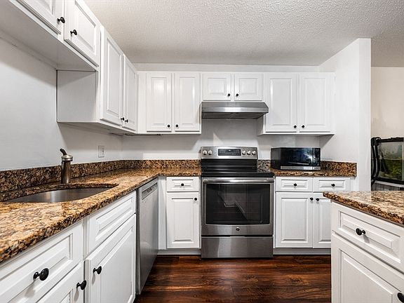 This beautifully updated ground-level 2-bedroom condo offers comfort, convenience, and community amenities all in one package. Venture inside to find a bright kitchen with stainless steel appliances, generous cabinet storage, and a dedicated dining area. The expansive living room opens to a private patio, perfect for relaxing or entertaining. Both bedrooms are spacious with ample closet space, while the modern full bath features a tiled shower and the added bonus of in-unit laundry & equipped with central A/C. Enjoy the benefits of a well-maintained community, including professionally landscaped grounds, an in-ground pool with clubhouse, and private access to walking trails. With easy access to highways, shopping, and restaurants, this condo truly delivers a lifestyle of comfort and convenience. Move right in and start enjoying everything The Courtyards has to offer!