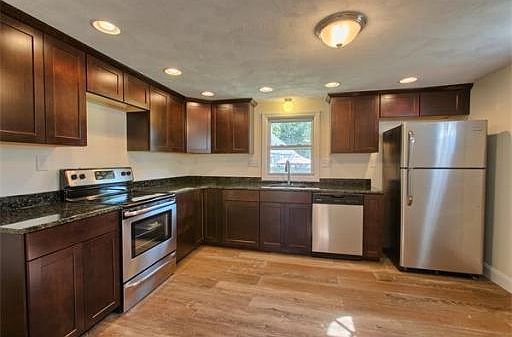 ALL NEW UPDATES- CONSTRUCTION AND RESTORATION COMPLETE. This single family cape has been completely updated. The kitchen sparkles with new appliances and cabinets. The bathrooms have been remodeled to create more space and updated with fine vanities. The entire house has been updated with new carpets, repairs to walls, paint and fixtures. This house has a bright feel with new light fixtures throughout and great window lighting. 2 full size bedrooms with closets are located upstairs with a full bathroom and the downstairs has an open concept with the kitchen, dining room and living room all providing a large space. Another bathroom is located in the rear of the home. The outside has brand new siding as well as new walk up stairs into the home. Space for one car in the garage and one in the driveway and very close to area amenities and Boston Road in Billerica..