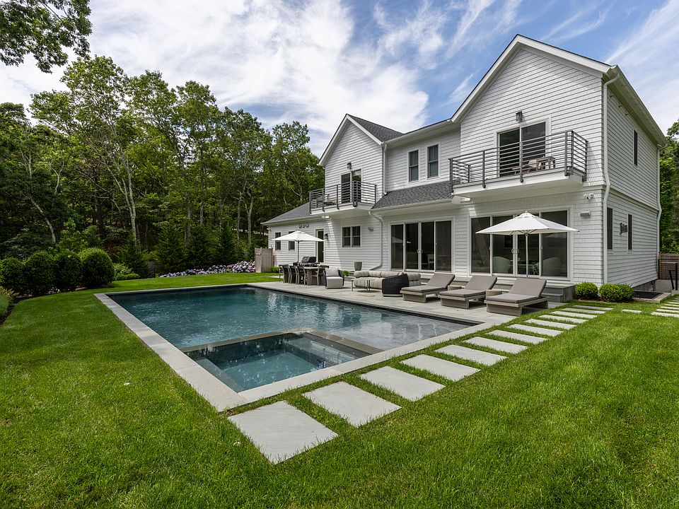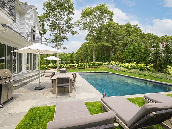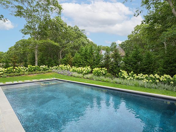 SF. of luxury living space over 6 bedrooms, 5 full and 1 half bath, heated pool, and spa. Sited on a shy half acre in Southampton and clad in white cedar shake siding, the home is a portrait of Hamptons elegance, sophistication and luxurious design. Enter through a double-height entry foyer, with a powder room and closets with an adjacent ground floor junior primary with an on-suite luxurious bath and walk-in closet. The open-concept great room encompasses the warm and inviting living room with a remote operated gas fireplace, dedicated dining space, and eat-in kitchen with brand-new premium appliances. Running the length of the home a wall of sliding doors in the great room and dining room brings the outdoors inside and through which the sparkling pool is conveniently accessed by a blue stone patio. This level also includes a mudroom with laundry, adjacent to the attached over-sized 2-car garage. Upstairs, the spacious primary bedroom has a private balcony, walk-in closet, and luxe bath with a glass-walled shower and freestanding soaking tub. The second level adds 3 more guest bedrooms, each with walk-in closets and one with a private balcony, 2 full baths, and an upstairs laundry room. In the lower level, this fully finished and furnished walkout basement spares no luxurious details, complete with 2 large recreation rooms, a full bathroom, and a bedroom with lots of natural light. Perfect for easy indoor/outdoor living, the heated gunite pool, spa, and blue stone patio is washed in sunlight. Privacy affording perimeter planted hedges and nearby mature trees create your own private oasis. Located in a quiet neighborhood, you will be moments from bay beaches and Peconic Marina, as well as world-class golfing and nearby shops and dining in Water Mill and Sag Harbor.