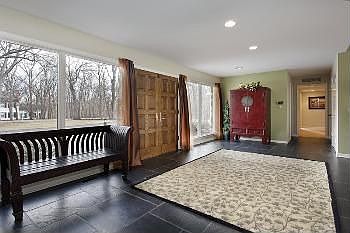 This sprawling custom ranch is located on exclusive Bridlewood Roadone of the most sought-after addresses in E. Northbrook and the entire North Shore! All rooms have been thoughtfully designed to relish the magnificent 1.7 acre estate. Enter into the gracious 22 wide Foyer where eyes immediately are drawn to the captivating wooded views of the expansive grounds from the lovely floor-to-ceiling picture windows in the elegant Living room which overlook the expansive grounds. There are volume ceilings and an inviting honed granite fireplace adding to the ambiance and a banquet-sized formal Dining room is nearby.Timelessly designed by DiGuilio, the gourmet Kitchen boasts a large granite center island, top professional appliances such as Sub Zero and opens to the Family room. There is a planning center, big pantry and an intimate breakfast alcove.Dramatic windows meet with volume ceilings providing more breathtaking views of the exquisite acreage in the Family room. Handsome planked walls and beamed ceilings combine with the raised brick fireplace creating architectural interest and oversized windows are everywhere seemingly bringing the outdoors in! A large adjacent entertainment area has a built-in bar for entertaining fun.The East wing consists of four large bedrooms all with generous closets and wonderful views. The Master suite has 8 sets of closets, a dressing area with his and hers vanities and a private bath with vaulted ceilings and soaking tub. Glass doors lead to a blue stone patio where one can go out for a swim in the sparkling pool or read the paper while listening to the sweet sounds of chirping birds. Leading from the Master is the fabulous spa complete with indoor resistance pool. All walls and vaulted ceilings are filled with the warmth of richly-hued teak walls and windows are everywhere allowing panoramic lush views of the breathtaking grounds.There are 2 additional bedrooms or office suites, each with private baths. The fifth bedroom/office is located in the west wing off the main floor laundry which could be an ideal nanny room, too. The spacious sixth bedroom/office suite is located on the upper level and boasts volume ceilings and volume windows specifically designed to capture nature at its finest and there is a huge walk-in closet/storage room as well.The lower level includes a large recreation room with bar, a game area and 2 large storage rooms. Outdoors there is an oversized 40' in-ground pool completely surrounded by beautiful bluestone patios.