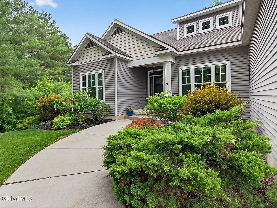 Tucked away on a private 2-acre lot, this meticulously maintained home offers 4 spacious bedrooms including a luxurious first-floor primary suite & 4 modern baths. There's room for everyone to spread out & enjoy. The open floor plan is filled w/ natural light from oversized windows, while built-ins add warmth & character throughout. The modern kitchen is a chef's delight, featuring GE Profile appliances & ample space for entertaining. In the living room, a cozy gas fireplace creates an inviting focal point. A finished basement offers versatile space for a game room, theater, or playroom. Step outside to a beautifully designed stone patio with a fire pit, ideal for gatherings or relaxing evenings. Located just 20 minutes from all that Saratoga Springs has to offer.