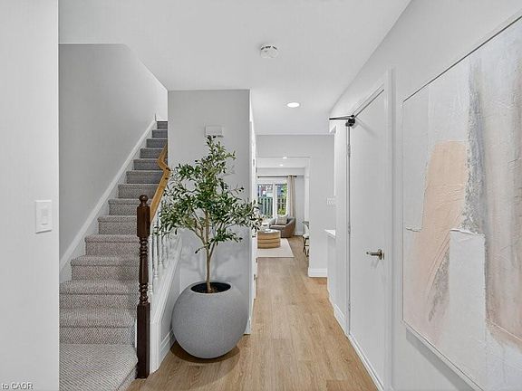 This beautifully renovated 3-bedroom, 4-bath end-unit townhome offers the perfect blend of style, space and low-maintenance living in a quiet small enclave of homes. Step inside and you’ll immediately appreciate the attention to detail throughout. Completely renovated from top to bottom, this home features all the finishes and design choices you love. The updated kitchen is loaded with cupboard space and showcases quartz countertops and stainless steel appliances. The main floor offers updated flooring, pot lights, and an ideal layout that flows seamlessly from the large family room with a newer bay window to the dining area highlighted by elegant wall mouldings, a stunning light fixture, and a walkout to your private backyard.Upstairs, natural light fills the home thanks to an extra side window exclusive to an end unit. The spacious primary bedroom features an oversized window and a beautifully updated ensuite with a walk-in shower and double sinks. Two additional bedrooms offer flexibility, one even includes a charming balcony overlooking the backyard. The main bathroom on this level has also been stylishly updated.The finished lower level adds even more living space with updated flooring and a 3-piece bathroom, perfect for all of your growing needs. The true standout is the private backyard, a rare find for a townhome. With no neighbours beside or behind, this end unit offers an extra-wide yard surrounded by mature trees, providing a greater sense of privacy and openness, ideal for relaxing, entertaining, or letting kids play freely. Enjoy easy, maintenance-free living with snow removal and exterior upkeep are all taken care of for you. Located close to parks, schools, trails, shopping, and transit, this home provides convenient access to everything the Hamilton Mountain has to offer, with quick connections to the LINC and downtown.