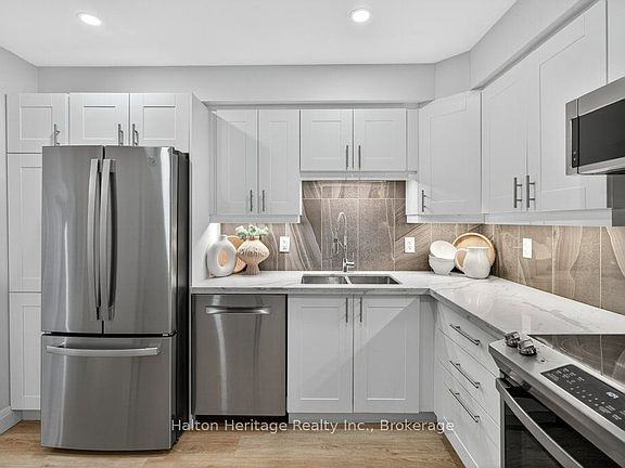 This beautifully renovated 3-bedroom, 4-bath end-unit townhome offers the perfect blend of style, space and low-maintenance living in a quiet small enclave of homes. Step inside and you'll immediately appreciate the attention to detail throughout. Completely renovated from top to bottom, this home features all the finishes you will love. The updated kitchen is loaded with cupboard space and showcases quartz countertops and stainless steel appliances. The main floor offers updated flooring, pot lights, and an ideal layout that flows seamlessly from the large family room with a newer bay window to the dining area highlighted by elegant wall mouldings, a stunning light fixture, and a walkout to your private backyard.Upstairs, natural light fills the home thanks to an extra side window exclusive to an end unit. The spacious primary bedroom features an oversized window and a beautifully updated ensuite with a walk-in shower and double sinks. Two additional bedrooms offer flexibility and one even includes a charming balcony overlooking the backyard. The main bathroom on this level has also been stylishly updated.The finished lower level adds even more living space with updated flooring and a 3-piece bathroom, perfect for all of your growing needs. But the true standout is the backyard and a rare find for a townhome. With no neighbours beside or behind, this end unit offers an extra-wide yard surrounded by mature trees, providing a greater sense of privacy and openness, deal for relaxing, entertaining, or letting kids play freely. Enjoy easy, maintenance-free living with snow removal and exterior upkeep are all taken care of for you. Located close to parks, schools, trails, shopping, and transit, this home provides convenient access to everything the Hamilton Mountain has to offer, with quick connections to the LINC and downtown.