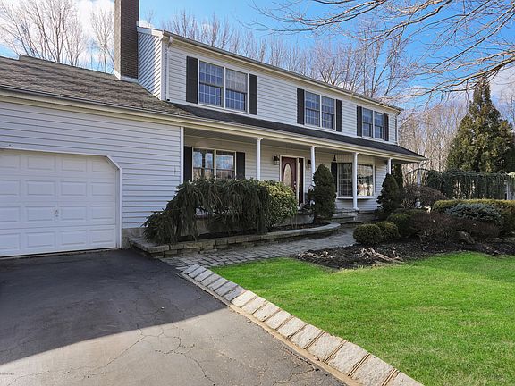 Run don't walk to this stunning 5 bedroom 3.5 bathroom Colonial located on a quiet cul-de-sac surrounded by nature. The eat in kitchen has been recently updated, it is bright and cheery, over looking the large ipe wood deck and in ground pool w/ a new liner. Step down into the family room which has a great wood burning fireplace, wander into the large dining room and living room which is the ideal set up for entertaining. Also on the first level is an additional in law suite, with its own living room and full bath. Upstairs you have four more bedrooms including your master with an en suite bath and w/i/c as well as your laundry room. Finished Basement, In-ground Pool, Landscaping, central vacuum, 2 car garage, and 2 zone HVAC just to add a few additional features. This is a true gem