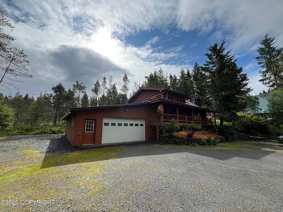 Discover the ultimate Alaskan getaway. Private & nestled in the trees this stunning log home featuring 3 bedrooms & 2 full baths. Enjoy ample space with a large laundry & mudroom, plus a spacious two-car garage. Recent upgrades include a brand-new steel roof & in 2024 the exterior was refinished & treated with a 25-year waterproofing stain & sealer for lasting protection. Relax & unwind in yourprivate sauna or cozy up by the woodstove, complemented by a mixture of baseboard heating & a high-efficiency heat pump to keep you comfortable year-round. The inviting covered front porch is perfect for enjoying peaceful mornings or evenings. Benefit from an impressive 10,000-gallon catchment system, ideal for sustainable living. Seller is willing to finance your purchase which helps you save. Located within walking distance of a public boat launch, you'll have easy access to exceptional fishing, crabbing, & sightseeing opportunities.
