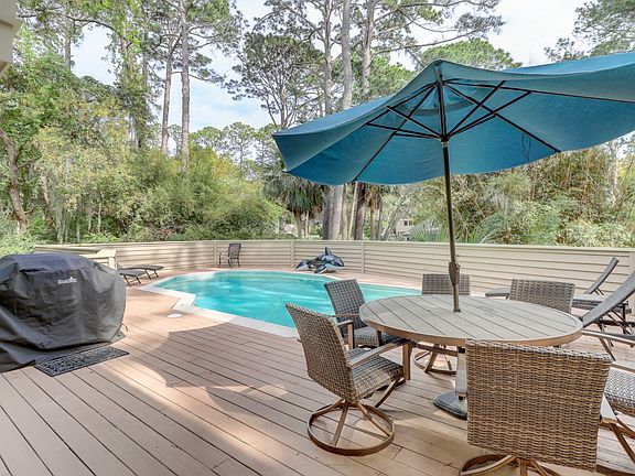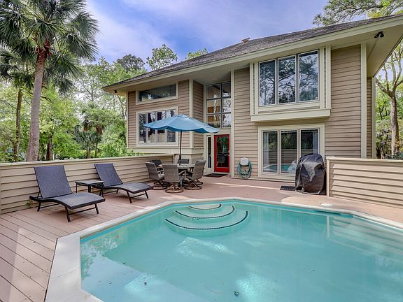 Great 4th row beach house near the Ocean Gate of Sea Pines. 5 bedrooms, 4 bathrooms, open living space and spacious pool deck. The multi-level split floor plan offers a master and guest bedroom on the elevated 1st floor, living space on the 2nd floor and another master, guest bedroom and bunk room on the 3rd floor. All bathrooms have been recently remodeled and bedrooms have been recently painted. Granite countertops and stainless steel appliances in the kitchen, as well as the laundry nook. The beach path is just steps from the home. This home is being offered fully furnished, making it ready for your enjoyment or the rental market.