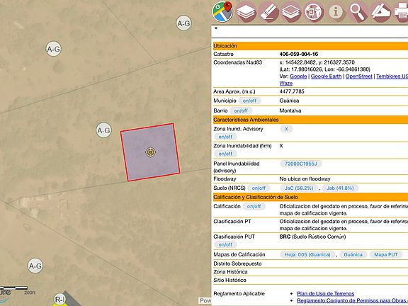 Great opportunity in Guanica! Completely flat land of 1.12 cuerdas for sale, with entrance on Highway 116 in Guanica PR, in a non-flood zone, with AG zoning. Permitted uses in District AG: RESIDENTIAL Housing for one (1) or two (2) families. Second floors: Micro House (tiny house), Specialized lodging. COMMERCIAL Businesses that exceed ten thousand (10,000) square feet of gross floor area for the sale of animals and agricultural products. Warehouses, Emerging Companies (startup), Renewable energy projects, Location of cultivation centers, manufacturing, manufacturing, distribution of cannabis products and laboratories for medicinal use, maintaining agricultural use as the main use, Repair workshop for agricultural and related equipment. Ecotourism, agrotourism activities. Other uses via location consultation. To coordinate a visit, evidence of availability of funds and / or bank pre-qualification is required. Call now!..
