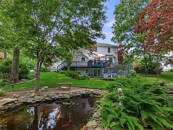 Nestled in one of Coventry's most tranquil neighborhoods, this beautiful 3000+ sqft Colonial has so much to offer. The main level's large kitchen, boasting an island and granite countertops, conveniently accesses the living room and deck area, allowing for easy indoor/outdoor entertaining and an open concept feel. The first level also offers a proper dining room, foyer, family room and/or office with a gas fireplace and French doors, a laundry area, and a half bath. Upstairs, the spacious primary ensuite is complemented by two more bedrooms and a newly renovated full bath. The walkout basement has plenty of storage and can serve various needs, with a full bathroom and two finished rooms. The picturesque park-like exterior has an impressive koi pond, a gazebo, a shed, landscaped pathways, lush greenery, underground sprinklers, a patio, a deck, and a playground area. Important updates/features to note: full house generator, 4 Bedroom Septic System, newer roof, newer central AC & heating systems, RISE updates, updated all full bathrooms & most flooring, newly leveled patio and a new front door. The location is close to the highway, just a short drive to Johnson's Pond and wooded trails to take your daily walks! Make this beautiful home your own!