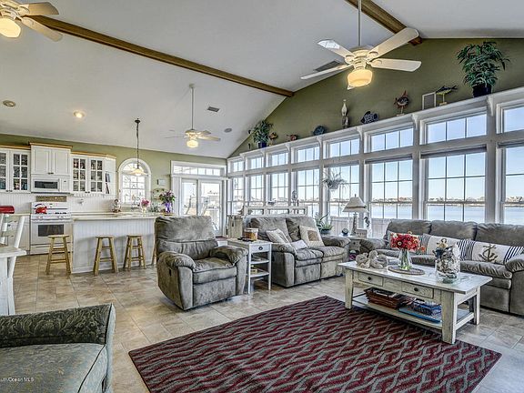 Exquisite Waterfront Retreat w/welcoming front porch! Custom renovations by current owners in 2010 - A paradise location w/spectacular sunsets! Placed on the corner of the lagoon & the bay w/an open floor plan thoughtfully designed. Some highlights are the views from the wall of windows in the cathedral GR & Kitchen w/island seating for 6 & built in buffet. A versatile floorplan having a Master Bedroom on the 1st floor AND the 2nd floor; each with their own baths & balconies! A beautiful FR off the kitchen w/French doors on both sides can be used as another guest bedroom. Cedar impression vinyl siding, large custom paver driveway and two-tier Trex deck surround the home on all sides allowing plenty of room for outdoor entertaining. Make this home YOUR new escape to your OWN paradise!