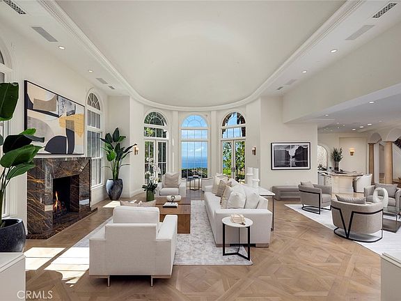 Situated on a prized front-row lot, this Pelican Crest showpiece estate was newly refreshed in late 2023 and enjoys unobstructed views of the Pacific Ocean, Catalina Island, Newport Harbor, Pelican Hill Golf Course, spectacular sunsets, and twinkling evening lights. Bespoke transitional interiors of approximately 14,000 square feet provide unsurpassed comfort and hosts seven bedrooms and twelve baths. Authentically detailed architecture, romantic archways, columns, domes, and Palladian windows work in tandem to create first impressions that will last a lifetime. A phenomenal entry with custom glass and iron door sets the scene and introduces airy galleries, a library, formal living room, and lavish guest suite complete with a private sitting room. Awaiting at the heart of the home is a two-story oval foyer which reveals a dramatic staircase, formal dining room for both grand-scale and intimate entertaining, and a spacious great room with six sets of French doors that open onto a fireplace-warmed loggia. Grandeur is elevated to lofty new heights with custom lighting, multiple interior and exterior staircases, impressive fireplaces, and one-of-a-kind flooring. Catering to professional and amateur chef’s alike, the gourmet-inspired kitchen complements timeless style with a butler’s pantry, center island, and a breakfast area. From romantic evenings at home and impromptu gatherings to formal affairs that are destined for the social pages, the generous floorplan offers three service bars and accommodates every occasion with style and sophistication. An elevator serves all four levels, including a basement with an eight-car garage, game room, gym, sauna, and steam shower. Take the stairs or elevator down to the sub-basement where a 34' indoor swimming pool is destined to be a favorite place for all who visit. Captivating ocean vistas embellish the owner's suite, where a large view terrace, sitting area, fireplace, dual walk-in closets, separate vanities, and a glamorous soaking tub fulfill the residence's promise of delivering uncompromising luxury. Lushly landscaped grounds recall the beauty of an exclusive Mediterranean resort, where graceful palms, broad lawns, and sunny patios are joined by a sublime ocean-view swimming pool and spa. Set just moments from championship golf courses, five-star resorts, high-end retail, and upscale dining, 14 Channel Vista represents a truly rare offering.