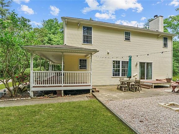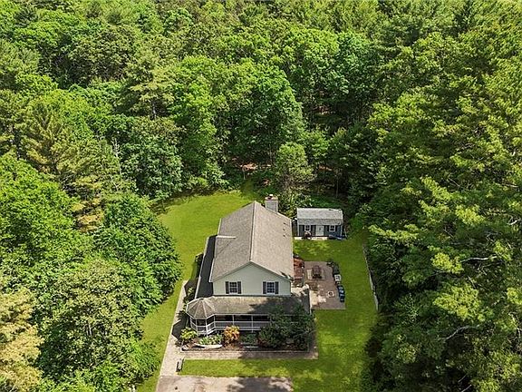 This grand colonial home is the private retreat you have been looking for with over 2 acres of woodlands, private walking trails and deeded access to Locustville Pond! This home boasts over 3,000 sqft of living area over 3 floors and has been meticulously maintained. Enter the home via a beautiful wrap around farmers porch perfect for experiencing the serene natural environment in any season. The first floor features hardwood floors, an open concept kitchen, dining and living room with wood burning fireplace as well as a half bath, formal dining room and den. The second floor enjoys a large primary bedroom with walk in closet and ensuite bathroom with a shower and soaking tub. The second floor also includes 3 additional bedrooms, another full bathroom with double vanity and laundry room. The finished basement provides abundant additional living space with an awesome media room as well as a custom bar room, work out room, additional living room, and additional storage. The property also contains a large shed for lawn equipment or additional storage, large patio area, porch and fire pit. Despite its tranquil setting, the property is just minutes from the highway, shops, and Rhode Island's finest beaches, restaurants, and attractions!