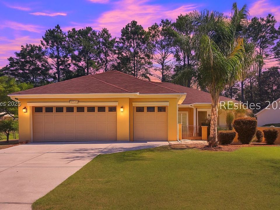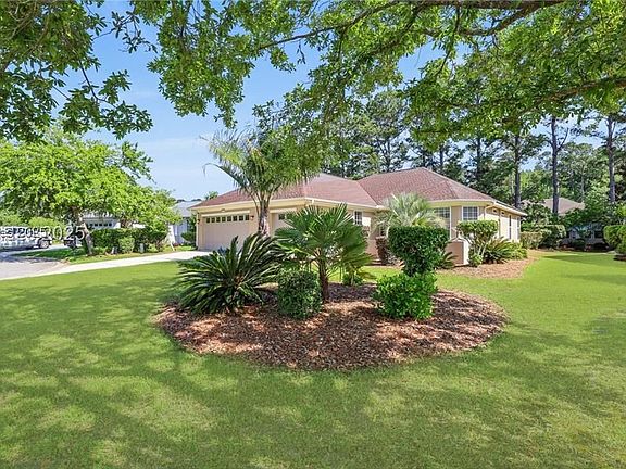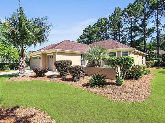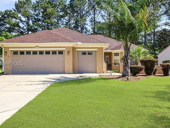 BRAND NEW ROOF & CARPET! This beautifully maintained Sun City Hilton Head home is tucked away on a quiet, private cul-de-sac and features a brand-new roof with a transferable warranty starting with the new owner! The spacious garage is a standout, offering durable epoxy flooring, a dedicated third door for your golf cart, pull-down attic storage, built-in shelving, and a functional workbenchperfect for projects and extra storage. Inside, the popular Hatteras floor plan includes a flexible bonus space ideal for a home office, guest room, or hobby area. Enter through a charming gated courtyard accented by fresh exterior paint and a clean stucco report. Out back, enjoy peaceful Lowcountry living from your screened porch or on the inviting brick patio.