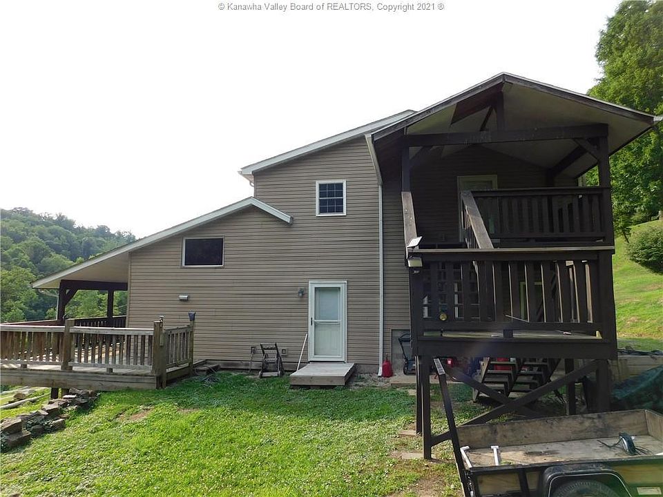 Contemporary on approximately 5 acres. Large kitchen, vaulted ceiling, nice cabinetry, stainless appliances. Large great room with fireplace insert. Dining room open to kitchen family room, upper level 2 massive rooms to add 2 bedrooms and bonus room! wrap around deck - 10 minutes to Cross Lanes, 10 minutes to Dunbar.