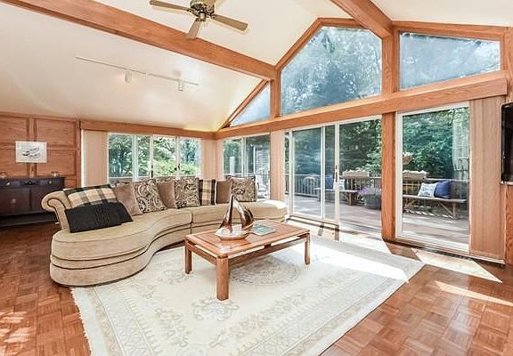 Looking for the perfect neighborhood with fabulous wooded views and a great room to fit a crowd? Well look no further. This surprisingly spacious 4 bedroom, 2 full bath Cape is located in one of Marblehead's most sought after neighborhoods walking distance to schools, town, bike path and Salem Harbor/Association Beach. This property has beautiful wooded views from a wall of windows in rear-facing family room with dramatic cathedral ceilings, skylights, built-ins and huge exterior wood deck. The kitchen has had many recent updates including granite countertops and stainless steel appliances. A living room with pellet stove, full bath, laundry room and 2 first level bedrooms complete the main floor. Upstairs are 2 more bedrooms and a full bath. The basement is dry with plenty of storage space and the attached 2-car garage has a convenient entry just near the kitchen. Enjoy peace and privacy outdoors from the spacious wood deck and yard. This very special home won't last long.