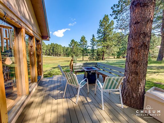 This is a great house for full-timers or as a 2nd home. Year-round easy access to this charming home with one-floor living set off the main road on a cul-de-sac and bordering a greenbelt and Cougar Trail. Beetle kill blue stained pine tongue and groove ceiling was recently installed in the living room. A wood burning insert stove keeps the house cozy in the winter and the deck off of the dining area is a great place to enjoy the outdoors when the weather warms up. Escape to the sunroom for some privacy which also offers convenient access to the hot tub year-round. Office or extra sleeping area. Fiber optic internet in the house. On demand propane water heater, mostly furnished.
