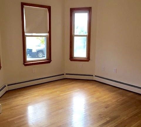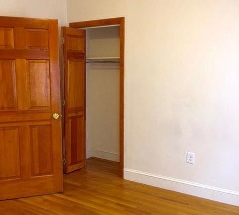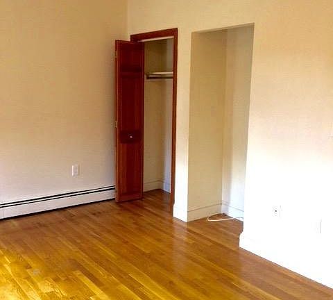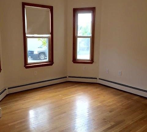 Walk into the spacious first floor unit with a comfortable open living room when you walk in. Gleaming hardwood flooring and door and window casings throughout. Plenty of light through the windows. One larger bedroom with two closets and one smaller bedroom that could be used as a second bedroom, guest room, or office/study. Large kitchen with plenty of cabinet space, gas range stove, dishwasher and disposal. Exclusive deck outside of unit and a large yard that is shared. Coin-op laundry in the basement and a storage shed, too! Ready for immediate move in. Hot water included in rent