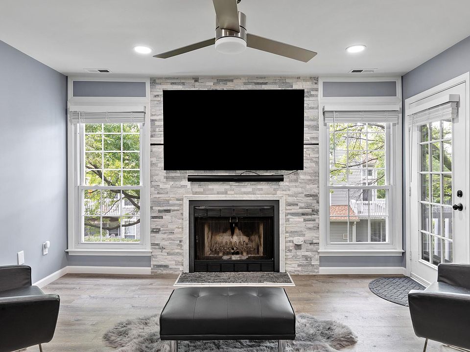 Welcome home to this stunning one bedroom condominium, in most desired Cross Creek Pointe. No detail was overlooked in this newly renovated space. The sunlit open floor plan features a statement stone fireplace and gorgeous eat-in kitchen, with quartz countertop and stainless steel appliances, including wine fridge. The expansive primary bedroom features large windows, two closets with built-ins, and direct access to the fully renovated bath. Enjoy serene privacy and lush landscaped grounds from your private outdoor balcony. Additional features include, Ring doorbell camera, Yale smart lock, central heat A/C, custom window shades and in unit washer/dryer. Cross Creek Pointe offers access to wonderful amenities, including, a swimming pool, BBQ area and tennis courts. Less than 1 mile from the George Washington Bridge, enjoy the convenience of a quick commute, with bus stop located at the entrance of the community. Only Cats Permitted. *Furnished rental option* for $3000/month. Tenant pays for gas and electric. Renters insurance is required. Tenant responsible for 1 month Broker fee. Only Cats are allowed.