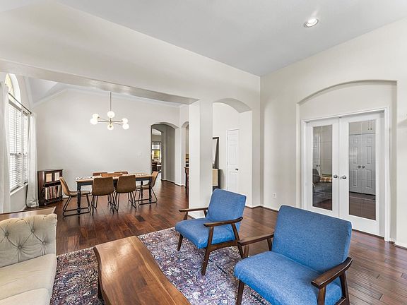 New A/C Units (2024)! New Roof (2023)! Step into this beautiful home where character meets resort-style living- complete with a welcoming covered porch, a gorgeous pool with a waterfall, and a large backyard with plenty of space for entertaining. The moment you step inside, you are met with an inviting living area that flows into a tastefully styled dining room designed for everyday living and special occasions. The large kitchen offers ample cabinet space, plenty of room for gatherings, and an island overlooking the family room with a cozy fireplace and built-ins on either side. All four bedrooms and three full bathrooms are conveniently located downstairs, while the upstairs game room and flex space are perfect for family movie nights, a playroom for kids, or a hangout spot for teenagers. The fourth bedroom also makes a great home office. Located on a peaceful cul-de-sac, this home is biking distance to Coulson Tough and TWHS 9th Grade Campus! Don't miss the virtual tour video!