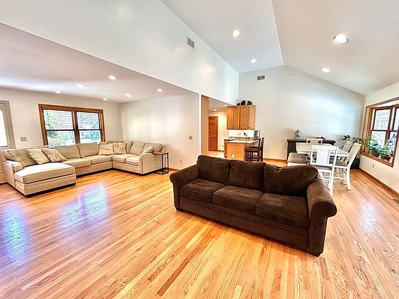 Looking for first floor living? This stunning custom-built oversized ranch is perfect for you! The first floor boasts an open floor that seamlessly integrates kitchen, dining and entertaining spaces. As you step inside, you will be greeted by gleaming hardwood floors that flow throughout the house, creating a warm and inviting atmosphere. Soaring cathedral ceilings capture the sunlight. This beautifully appointed residence features a spacious main bedroom complete with its own private bath, ensuring a serene retreat as you relax in the soaking tub. Two additional well sized bedrooms have ample space for sleeping of office space. Step outside onto the expansive large deck that is surrounded by nature's beauty. The lower level is a blank canvas, ready for all your finishing ideas. Great for storage and all your toys. Don't forget the invisible fence, sprinkler system, newly painted interior, refinished floors, central air, newer roof and top decking.This one is a gem!