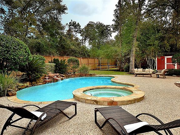 Elegant & refined, wonderfully updated home on huge lot in heart of The Woodlands boasts extensive stone & wood flooring, designer kitchen w-custom cabinetry w-under cabinet lighting, wine fridge, etc & spacious adjacent breakfast room. Amazing floor to ceiling stacked stone fireplace in light, airy den w-abundant windows overlooking gorgeous pool/spa & huge backyard w-inviting landscaping & handy storage shed. Enclosed game rm & 3 spacious bedrooms up. Updated master bath w-frameless shower.