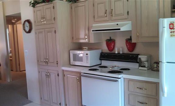 Fleetwood manufactured home on leased land in move-in ready condition. Fully furnished and equipped, two bedrooms, 2 bathrooms, sliding glass windows on lanai, storage shed/workshop, car port. This 55+ community is tucked away only a couple of minutes from Hwy 17-92 W at Lake Alfred, and only a short drive to Haines City and Hwy 27. There are lots of seasonal activities, swimming pool and a 9 hole golf course with very reasonable rates where you can walk or ride.