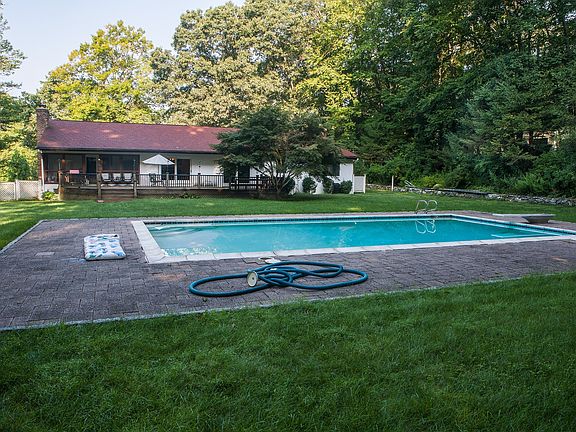 Welcome to 14 David Road. Sprawling Mediterranean Ranch, with stone lined driveway, park like property with In-Ground Gunite Pool. This Four bedroom home is the ultimate entertainer with sliding glass doors from the Living room, Dining room , and kitchen leading to the yard. Beautiful level lot with park like property, lounge on your deck while you entertain around the pool. The Family room features stone fireplace surrounded by built in cabinetry and French doors leading to patio room.