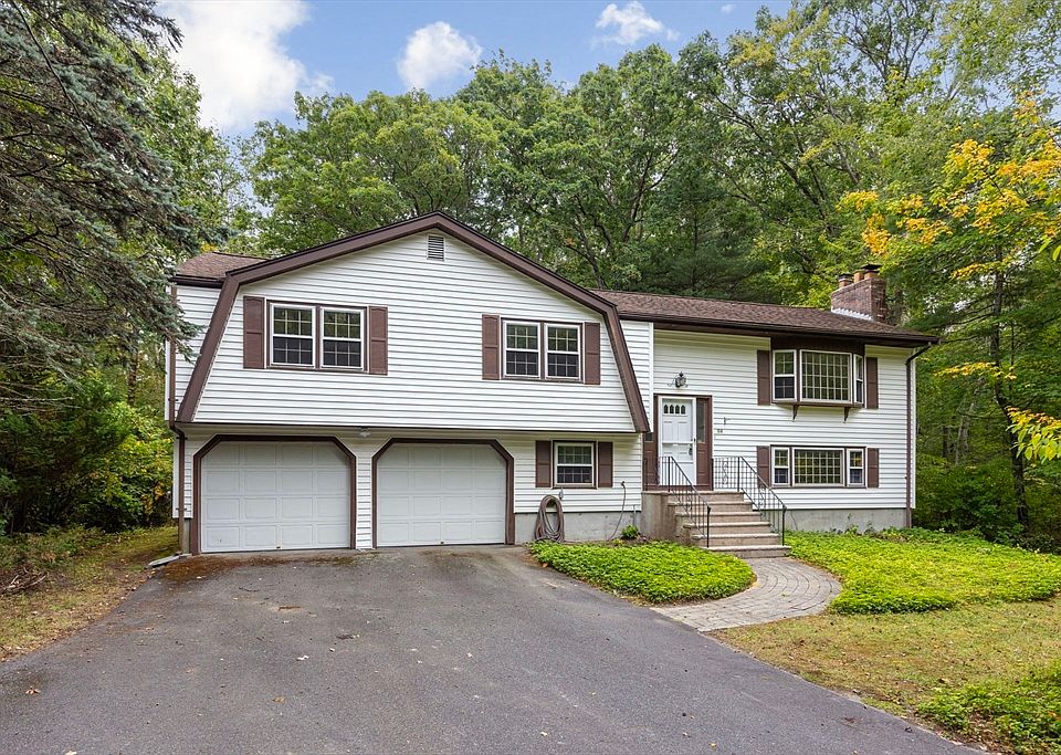 Welcome home to this lovely 3 bedroom 2 1/2 bath raised ranch in the much sought after area of north Walpole. This home is surrounded by nature on a peaceful 1.8 acre lot. Gleaming hardwood floors throughout. Large eat in kitchen, separate dining room with access to a closed in sun room/porch. Updated first floor bath. Living room with fire place. Primary bedroom with en suite and two large bedrooms complete the first floor. Family room on lower level with wood burning stove and built in bar. Laundry area with plenty of storage space, office/utility space and a two car garage complete this level. New septic system to be installed.