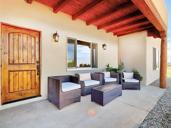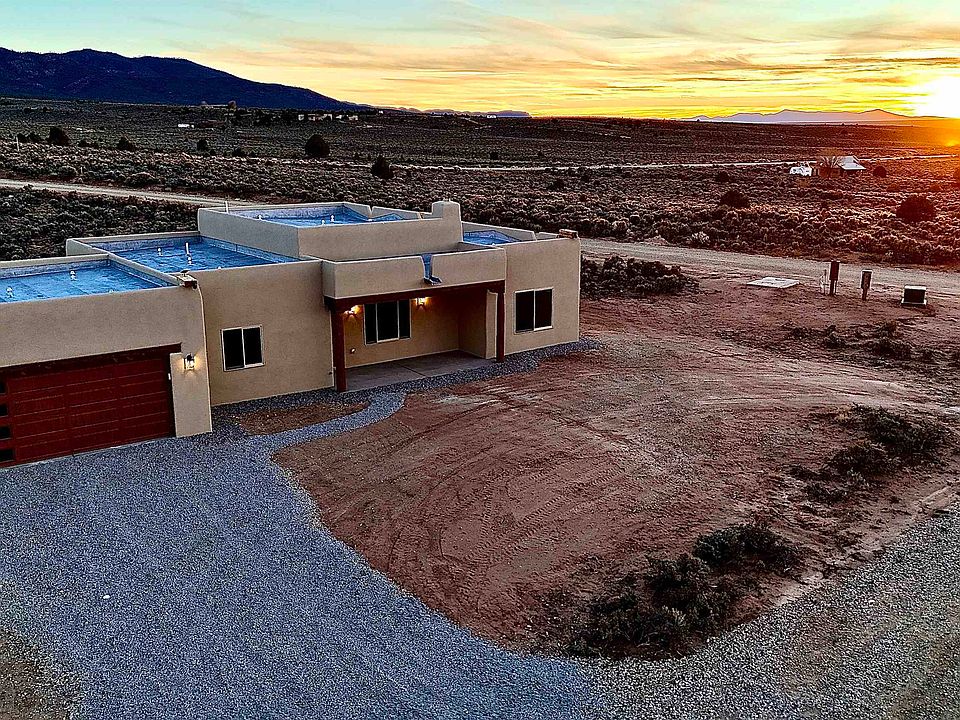 Tranquil, peaceful, and absolutely stunning 2025 Southwest Pueblo-style home for sale near the hiking trails at the end of town! Superb quality with an extra 4” of concrete footings and extra rebar to ensure a solid foundation and structural integrity of the home. Utilities include: a shared well (5 homes), septic, electric, and propane. Radiant heat throughout the home for warm floors on a snowy day. A southwest fireplace in the living room for ambiance and roasting marshmallows on those cold, blizzardy nights! Vigas in the main living space to complement the high ceilings. Custom details throughout - gorgeous handmade Talavera tiles used for the backsplash in the kitchen and bathroom, and accents in the showers and sinks. Matching mirrors above each sink for a well thought-out design flow throughout the home. Light green tiled countertops in the kitchen to forest green tiles in the bathrooms. Custom shower glass doors in each shower with no step but a gentle slope accommodating little ones, pups, elders, or those who may be easily clumsy! A well-balanced color palette with neutrals to bright reds, yellows, orange, dark blues and an overall green tone that feels refreshing and warm. Photos capture the elegance, while the virtual tour captures artistic touch. 3D walkthrough and floor plan are added as a bonus to the listing for you to experience the home if you’re not able to see it right away. Last but not least, the expansive views in all directions will always remind you that the mountains are home! A simple yet heart-wrenching reminder of what makes Taos so special and why we all love it so much! *Four Pinon trees to be added to the property* See here for 3D rendering: https://tours.dragonfly360imaging.com/299473