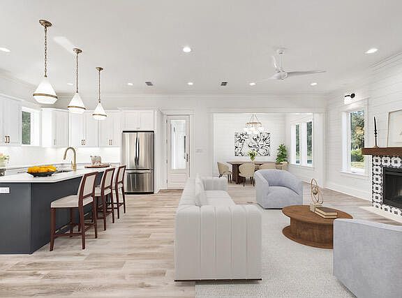 Situated in the heart of Point Washington, this thoughtfully designed home in Grayton Bayou offers a perfect blend of elegance and coastal charm. Just a short bike ride to Grayton Beach and a five-minute walk to Choctawhatchee Bay, the location provides easy access to both the Gulf and the bay.Inside, the home features 10-foot ceilings, custom cabinetry, upgraded flooring, and a gas fireplace. The gourmet kitchen is equipped with a commercial-style range, quartz countertops, a custom hood vent, a walk-in pantry, and stainless steel appliances. The spacious floor plan includes an oversized great room, a primary suite, three guest suites, a secondary den, an additional half bath, and a two-car garage. The well-thought through floor-plan offers an over-sized great room, a well-appointed master suite, 3 guest suites,