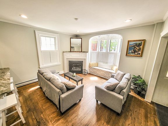 Upon entering, you are immediately struck by the sense of sophistication. The interior boasts high ceilings, hardwood floors, and an abundance of natural light that floods the rooms, creating an inviting atmosphere throughout. The centerpiece of the living area is a lovely gas hearth, perfect for cozy evenings and adding a touch of warmth and ambience.