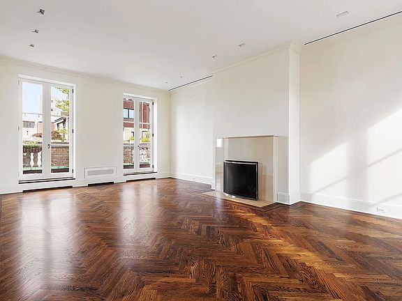 Just east of the library is the formal living room, which offers another wood burning fireplace and further access to the terrace via another set of french doors. In classic Upper East Side style, each room is separated from the next, yet the size of the rooms - the living room is 25' wide - plus the openness of the corridors and the connectivity of the terrace creates an unusually smooth flow.