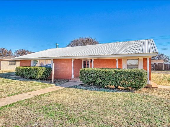 Welcome Home to this remodeled large brick home in a great neighborhood in Sayre, OK, close to school! This gorgeous home can be a 3 bedroom at the new buyer's discretion or leave as a 2 bedroom with a large "Bonus" room. Home has almost 2100 square feet with a flowing open floor plan and TONS of storage. The metal roof will save future owners money on their insurance! Water softener included. Bathroom is handicapped-accessible with a walk-in shower. New ceiling fans throughout with fresh paint in many rooms! Kitchen is very spacious with plenty of room for breakfast nook or coffee bar area! 2 car garage and carport with a storage/workshop attached! Enjoy mornings and cookouts under the covered patio. Move in ready, call today for a private showing!