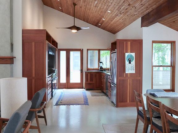 - Additional structures: Garden Shed, 1600 feet of decking, including a lovely ocean-side outside dining area. Heat is Oil FHA for the core structure and the guest suite; radiant in the primary suite. Installation of A/C JUST completed. All new storm/screen doors. All exterior trim newly painted and whole property power washed.
