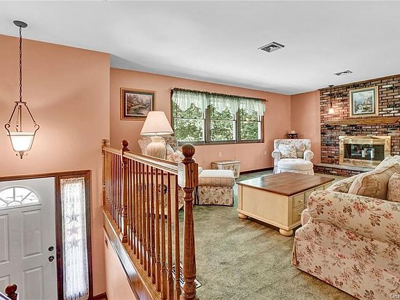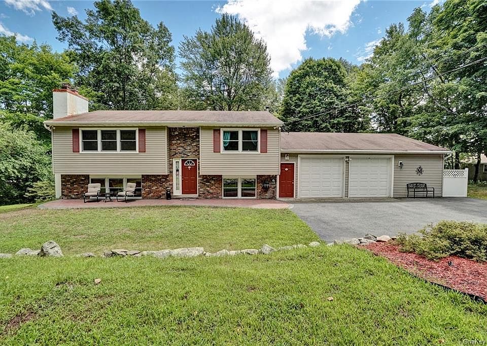 The perfect combination of privacy, size and a peaceful setting is waiting for you in the Wallkill school district. Raised ranch is set back off the road and sits pretty on a serene and wooded 1.3 acre lot boasting over 2300 square feet of living space. Find flexible floorplan with a unique twist as two bedrooms are situated upstairs and two downstairs with the convenience of a full bath on each floor. Spacious layout is ideal for extended family, guest space or work from home with comfortable quarters for all and lower level is accessible without the use of steps. Open kitchen invites entertaining and sliders lead to deck for grilling and chilling. Fireplace is focal point of light filled living room and unwind in family room warmed by woodburning stove. Cambridge paver walkway leads to front door and oversized two car garage doubles as man cave escape! Prepare to fall in love with park like property and plenty of room to roam. Conveniently located in the town of Newburgh and just minutes to highway and shopping .