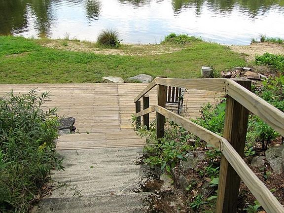 HUGE PRICE REDUCTION! Set in quiet cove of Wyman Pond, this 2-bedroom with a 3 bedroom septic system,is move-in ready. Newly refinished hardwood floors and tile throughout; wood ceilings, freshly painted throughout, custom hand-made cabinets by the owner, under counter lighting, living room access to huge deck overlooking the water; master bedroom with sitting area, cathedral ceiling and access to your own private patio! Much has been done to this great waterfront home - just waiting for the right buyer! It could be you!
