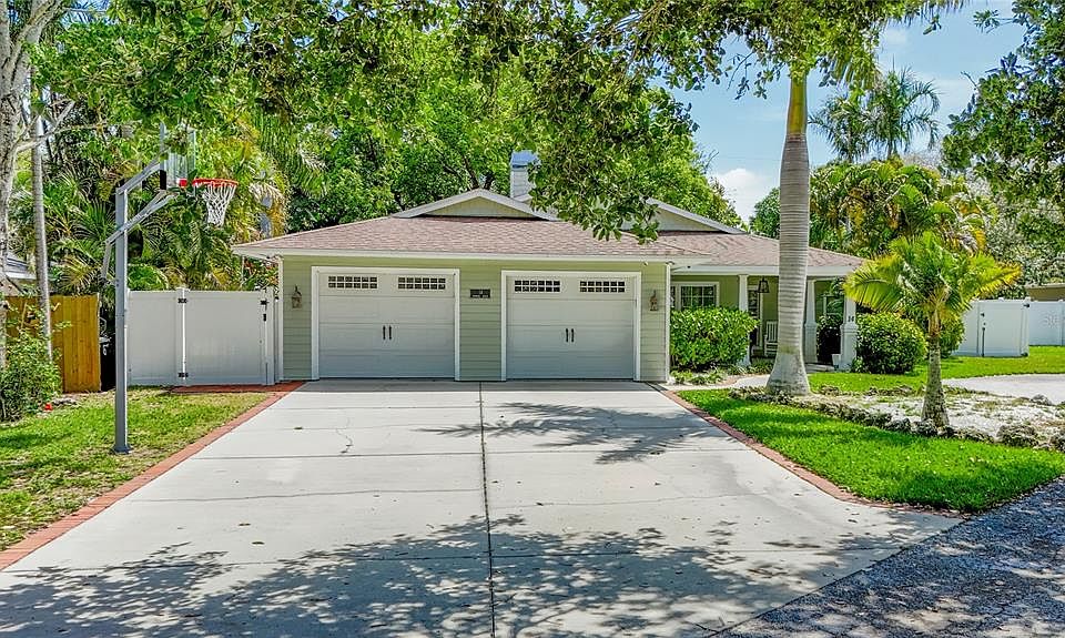 Live in the heart of Belleair and experience the charm of this beautifully updated 3-bedroom, 3-bathroom home offering over 2,200 sq. ft. of stylish living space. A welcoming front porch sets the tone, perfect for morning coffee or winding down in the evenings. Step inside to find soaring ceilings, rich wood floors, and a cozy wood-burning fireplace that anchors the open-concept living area. The gourmet kitchen is a true centerpiece, featuring custom wood cabinetry, sleek granite countertops, a double sink with a touch faucet, and high-end Frigidaire Professional Series appliances—all seamlessly integrated with bar seating for casual dining and entertaining. The thoughtful split-bedroom layout provides optimal privacy. The spacious primary suite offers plantation shutters, a walk-in closet, and a spa-inspired en-suite bath. Two additional bedrooms share an updated full bathroom, ideal for guests or family. Step outside to enjoy a private, fenced backyard shaded by mature oak trees, complete with a wood deck—perfect for outdoor dining or relaxing under the canopy. Ideally located just minutes from upscale shopping, top-rated restaurants, award-winning Gulf beaches, and two premier golf courses, this Belleair gem offers the perfect blend of comfort, convenience, and lifestyle.