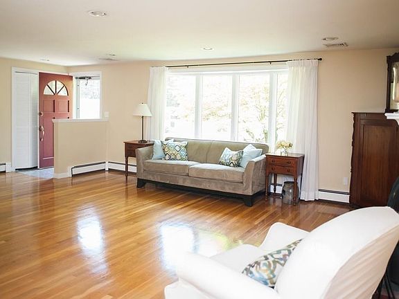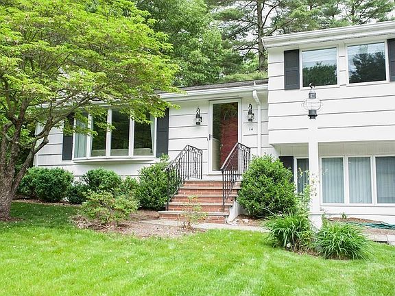 Warm and welcoming! Wonderful opportunity to own this special home on a spectacular lot in one of Medfield's desirable neighborhoods. Enter into the inviting living room with lots of natural light, beautiful hardwood floors and wood burning fireplace. Continue to the open dining room perfect for a large farmer's table. Step down to the sun room with a cathedral ceiling and slider to a great size deck for outside dining and lazy lounging. Easy kitchen has contemporary white cabinets. Proceed to the second level to a lovely master bedroom, two nice size bedrooms with closet units for easy organizing and full bath. Wonderful space on the lower levels with plenty of room for the kids to play, home office with half bath, wet bar and walkout door leading to a beautiful serene backyard perfect for summer entertaining!