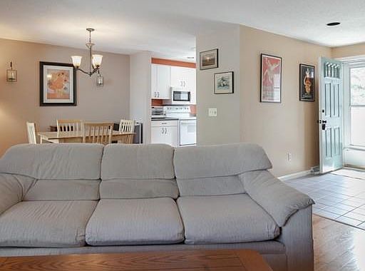 Awesome tri level end unit townhouse at desirable Castle Hill in Blackstone. Main level features open floor plan including large living room with hardwood and fireplace, dining room with hardwood and sliders to private rear deck, bright kitchen with white cabinets and tile flooring and front hall half bath with tile flooring. Dramatic entry foyer leads to second floor featuring two ample bedrooms and a large bathroom with tile flooring and double vanity. Nicely finished walkout lower level with sliders and private garage for added convenience. Don't miss out. Call today!