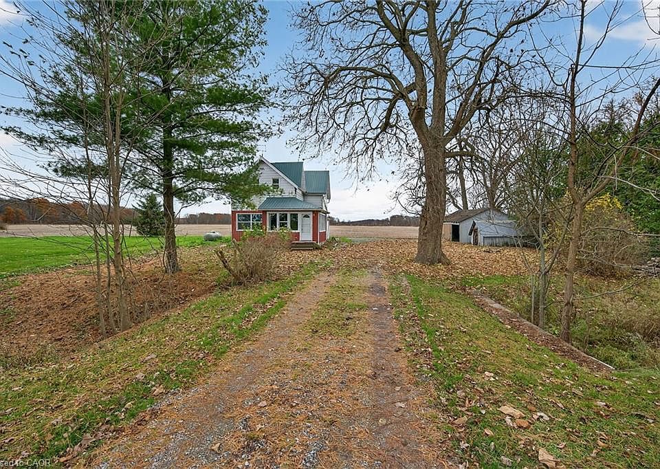 ATTENTION: ALL INVESTORS, RENOVATORS, FLIPPERS OR ANYONE LOOKING FOR AN AFFORDABLE RURAL PROPERTY - then you MUST check out this 1.3 acre package located 10 minutes southeast of Dunnville’s amenities fronting on quiet, secluded secondary road - near the hamlets of Stromness & Lowbanks with sought after Lake Erie beaches in close proximity. Large cities & major transportation routes - like Hamilton, Welland & QEW are 40-50 minute commuting distance away. Includes 1.5 storey country-style farm house completely gutted to the studs features new 200 amp hydro service & wiring installed, p/gas furnace in place, solid water cistern, approved septic system report from 2023, metal roof, newer vinyl windows, versatile 600sf shed (needs some TLC) plus new Home Hardware, Dunnville, custom designed (specifically for the house) kitchen cabinetry (not installed). Gorgeous 262.47ft x 216.54ft clean, uncomplicated lot provides the perfect blank canvas for that private, secluded estate home you have constantly dreamt about - waiting to enjoy the solitude of endless acres of calming farm fields punctuated with a picturesque forest back drop. Take advantage of the huge money savings as the recognized residential dwelling should save development/lot levie costs, potential HST applicability & several associated building permit fees (ie: road entry permits, utility connection permits etc.). Natural gas at or near the lot line. Survey available - Sold “AS IS”. Unlimited Possibilities for that energetic someone with a vision!!