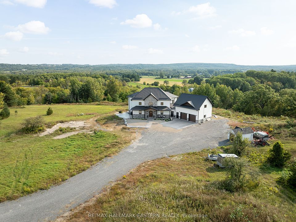 Welcome to 14 Ferguson Hill Road a one-of-a-kind hilltop retreat set on 10+ ultra-private acres with panoramic views of the countryside, sunrises, and sunsets. Located just minutes from Hwy 401 and only 75 minutes to Toronto or Kingston, this custom-built home with a non traditional layout, blends high-end design, energy efficiency, and incredible lifestyle potential. From the 7 large apples trees yielding fruit, allowing you to explore the potential of small batch cider making to being presented with the opportunity of having a small farm (livestock, trees or crop), this dreamy property is a peaceful rural escape opens a world of possibilities from hobby farming to the perfect work-from-home setup with breathtaking views. Inside, you'll find 2+2 bedrooms, 3.5 baths, and premium finishes throughout. Radiant heated white oak floors, soaring 20-ft cathedral ceilings, and R-33 insulated concrete walls provide warmth and comfort, while exposed steel beams and 9-ft ceilings highlight the home's craftsmanship. The chefs kitchen features Italian quartzite countertops, GE Cafe matte white appliances, a farmhouse sink, and copper prep sink on a large island with a pot filler.Upstairs, the principal suite offers a 5-pc bath and peaceful vistas. A second bedroom and flexible bonus space suit multiple uses. Downstairs includes two additional bedrooms, a 3-pc bath, and a spacious rec room with a full wet bar and access to a covered patio with gas BBQ hookup perfect for entertaining.The garage features radiant heated floors and a 600+ sq. ft. self-contained studio with kitchenette and 3-pc bath, perfect set up for parents, in laws or grown children. Grow your own food, explore income (or enjoyment) generating ventures on the land, travel to nearby farm-to-table markets, or simply enjoy the vibrant local community. Amazing neighbours, top-tier mechanicals, and luxury in every detail this is more than a home, it's a lifestyle. Seller willing to do a VTB.