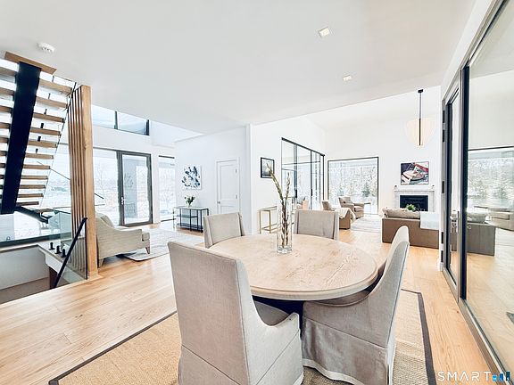 Designed by custom home builder Vita Design, this exciting newly constructed modern residence is a refined architectural statement that balances scale and light, capturing direct 5 Mile River views and a connection to its natural surroundings. Finished across four levels, the home features dramatic 10- and 16-foot ceilings and a main level wrapped in floor-to-ceiling European-style windows filling the interior with natural light, creating seamless indoor-outdoor living. All living spaces are designed for flexibility and function. The kitchen showcases an oversized center island, Leicht mahogany cabinetry, Miele appliances, huge pantry and spacious dining area overlooking the river. The primary suite offers a private retreat with balcony, water views, lux bath and generous closets. All other bedrooms feature en-suite baths with high-end, individual finishes. Lower-level and third-floor bedrooms provide privacy and adaptable use. Outdoor living centers around the covered wrap around patio and heated pool with retractable cover, enhancing the home's resort-like feel. Additional amenities include home automation, mudroom, laundry room, and a fully finished lower level with large recreation / home gym space. An oversized three-car garage completes the home. Minutes to world class Darien, Rowayton, Long Island Sound, and easy access to New York City & New Haven by train or car. Coastal CT at its very best!