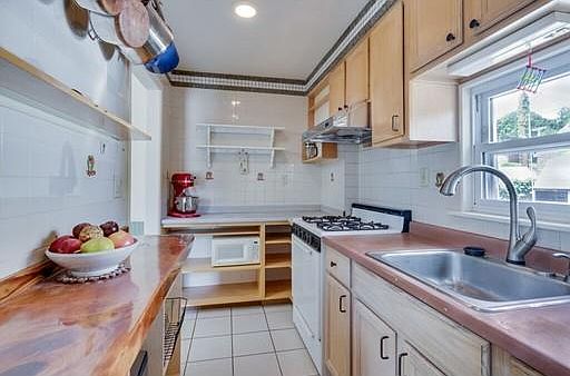 Adorable 2-3 bedroom colonial awaits your finishing touches. Spacious living room with hardwood floors and ceiling fan, oak cabinet galley kitchen with separate tiled dining room, and first floor den. Two bedrooms and tiled bathroom on second floor. Plenty of storage space, partial basement, gas heat, and brand NEW roof with 50 year Warranty. 2 car driveway behind house and storage shed. Convenient to highways, bus routes, Woburn Center, and a short walk to Horn Pond!