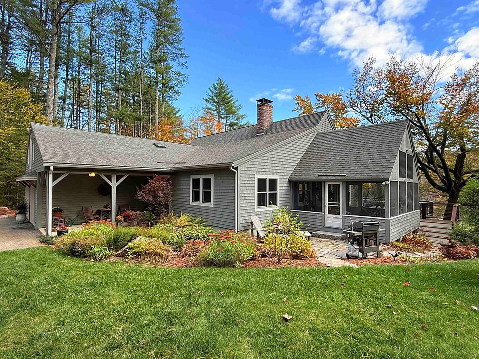 Captivating Mt. Kearsarge views, and long Cascade Brook frontage, affording exceptional privacy, abutting conserved land—all just 10 minutes from New London's town center. Sited on over 7 acres in a serene alpine setting, this property offers the feeling of being worlds away from the bustle while remaining close to every convenience including the Elkins Fish & Game Club and the town's ball field. The home boasts a wealth of inviting spaces inside and out: a soaring fireplaced living room, open-concept kitchen and dining, spacious screen porch, expansive deck, and multiple patios—including one with hot tub and outdoor shower, and beautiful perennial gardens. The first-floor primary suite provides comfort and convenience, while additional bedrooms, a pool room, generous office, workshop, and abundant storage round out the versatile floor plan. From quiet mornings on the deck to cozy evenings by the fire, this is truly a home to love through the years. Welcome to an Open House, 1 PM to 3 PM, Saturday, Sept. 6th.