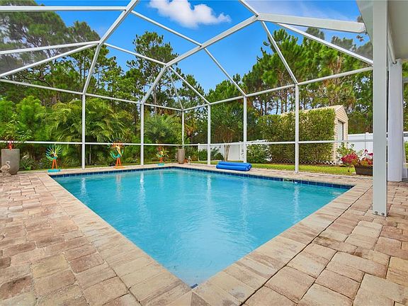 You’ll Say “Wow” the Moment You Step Inside! Welcome to this beautifully upgraded 3-bedroom, 2-bath pool home offering an absolute park-like setting and unmatched privacy. From the moment you enter, you’ll fall in love with the open layout, natural light, and modern finishes throughout. Enjoy a spacious eat-in kitchen with brand-new granite countertops, stainless steel appliances, and plenty of cabinet space — perfect for family meals and entertaining. The home features laminate floors throughout, including the primary suite, and brand-new carpet in the two guest bedrooms. The split-bedroom floor plan provides ideal privacy. The primary suite offers a large walk-in closet and a luxurious en suite bathroom with a walk-in shower, vanity, and separate makeup area. The open family room boasts vaulted ceilings and sliding doors that lead to an inviting covered porch overlooking your sparkling solar heated pool surrounded by pavers and lush landscaping — a true backyard oasis! Enjoy peace of mind with new roof (2021), new water heater (2024), and new windows (2024). This home’s prime location offers miles of walking and biking trails just steps away, and you’re only minutes from the beach, shopping, and dining. This home is simply beautiful — easy to show and ready to sell!