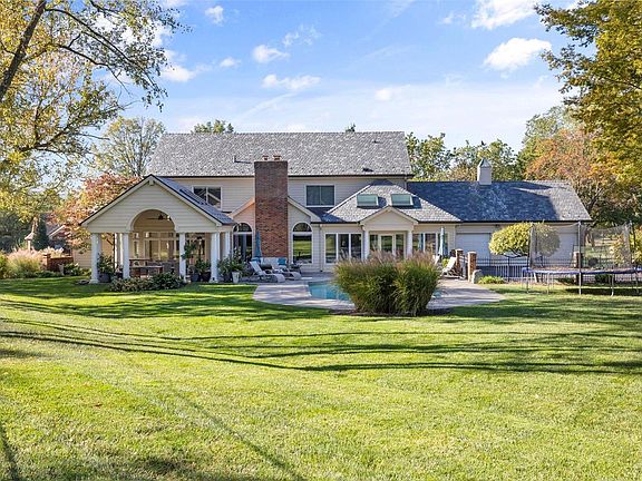 Welcome to this wonderful Frontenac home! As you walk in the door you are welcomed by the dramatic staircase in the entry foyer which opens to the dining room, a study with built-in bookcases & paneling & an open great room w/ detailed box ceiling. The eat-in kitchen has granite countertops, stainless appliances, & opens to the sunroom. Additionally there is a 4 season room which has a convenient pool bath and French doors which open to the covered porch & picturesque pool. The large primary suite has a walk-in closet & dynamite bathroom w/ floating vanities, smart mirrors, large walk in shower w/ dual heads & private water closet. Upstairs you'll find 3 additional bedrooms, 2 full baths, & a loft. The LL has a large rec room w built ins & bar, a 4th full bath, workout room, office & amazing storage including a cedar closet. This stunning home boasts a main floor laundry & a 3 car garage. Gorgeous corner lot with circular drive, pretty landscaping & gracious backyard. Wonderful value! Additional Rooms: Sun Room