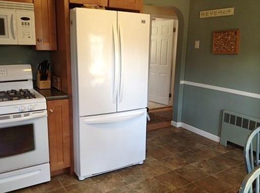 Great condo alternative! Easy access to rte 128. This updated home is situated on a lovely side street in a great neighborhood. Hardwood floors in most rooms. Newer heating system, new hot water heater. Drainage system in basement was installed. Owners say that they have a dry basement with this system. Remodeled bathroom with new fixtures and tile floor. New front door and storm door. Newly remodeled eat in kitchen with cherry cabinets. Kitchen window overlooks the flat, grassy yard with plenty of room for play or a garden. This house is "move in ready!" Any offer is contingent upon sellers finding suitable housing.